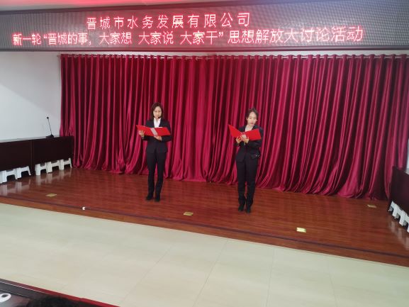晉城市水務發(fā)展有限公司舉辦新一輪“晉城的事,大家想大家說大家干”思想解放大討論活動,共分朗誦、演講以及知識競賽三項內(nèi)容,朗誦、演講環(huán)節(jié),大家慷慨激昂;知識競賽環(huán)節(jié),大家各隊內(nèi)部團結互助、拼時間、拼智慧;難分伯仲,觀眾的掌聲、加油聲此起彼伏,充分體現(xiàn)了一種不畏挑戰(zhàn)、敢于競爭的先鋒精神。