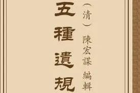 《五種遺規(guī)》,清陳宏謀輯。清代社會教育和蒙童教育教材,清末中學(xué)堂修身科教材。輯者有感于世上多有弊端,遂于公務(wù)之余,采錄前人關(guān)于養(yǎng)性、修身、治家、為官、處世、教育等方面的著述事跡,分門別類輯為遺規(guī)五種:《養(yǎng)正遺規(guī)》、《教女遺規(guī)》、《訓(xùn)俗遺規(guī)》、《從政遺規(guī)》和《在官法戒錄》,總稱《五種遺規(guī)》。