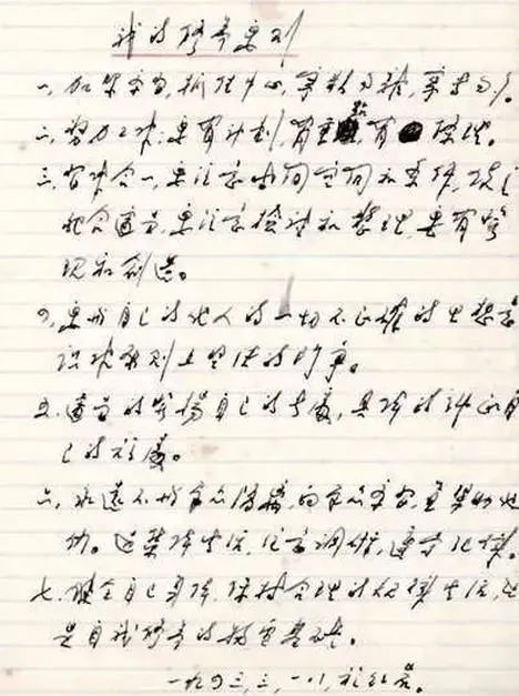 1943年3月18日,是周恩來農(nóng)歷45歲生日。這天,南方局的同事們?yōu)樗麥?zhǔn)備了茶點(diǎn)祝壽,但他并未出席,而是在辦公室寫下了一份《我的修養(yǎng)要?jiǎng)t》,以明心志: